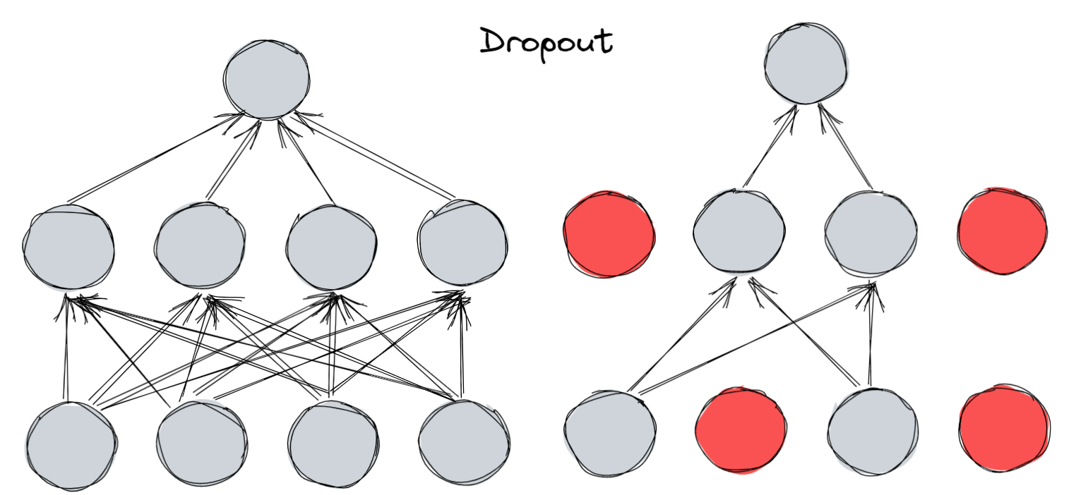 hi(l+1)=σ(wi(l+1)⊤(hl⊙zl+bi(l+1))) - 0이 곱해지면 노드는 죽어버림