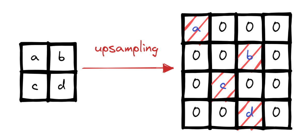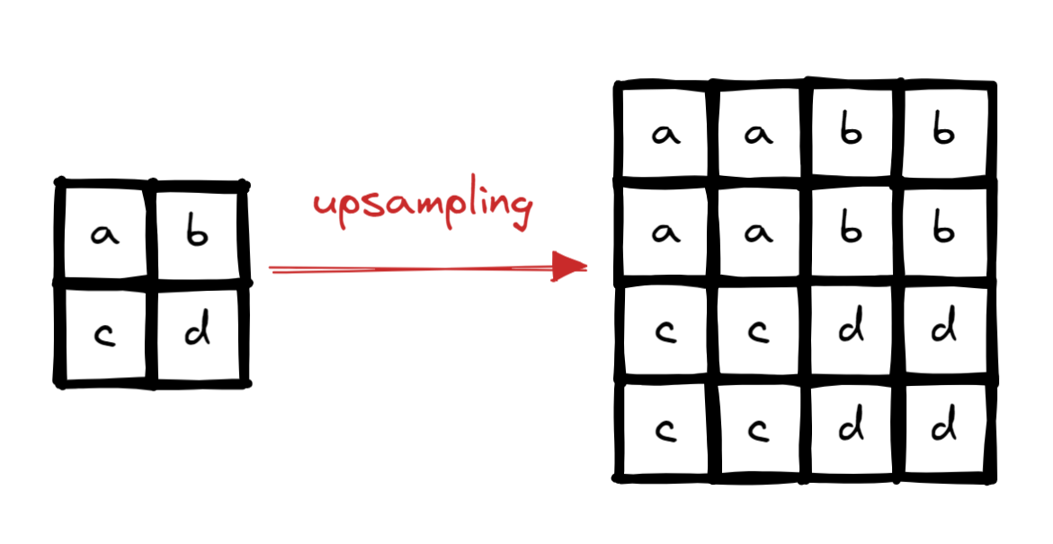 - upsampling 이 필요하다.