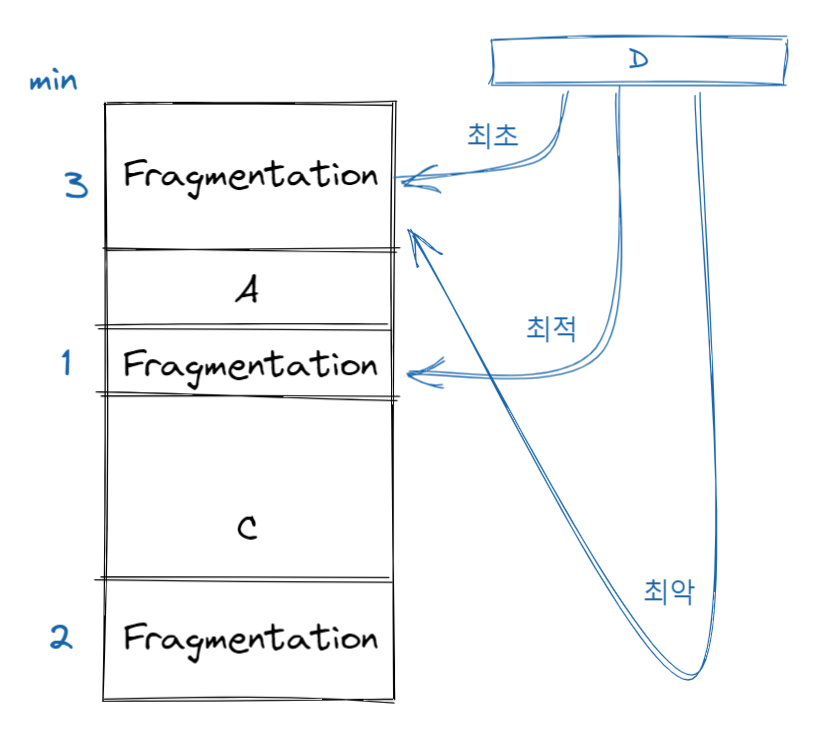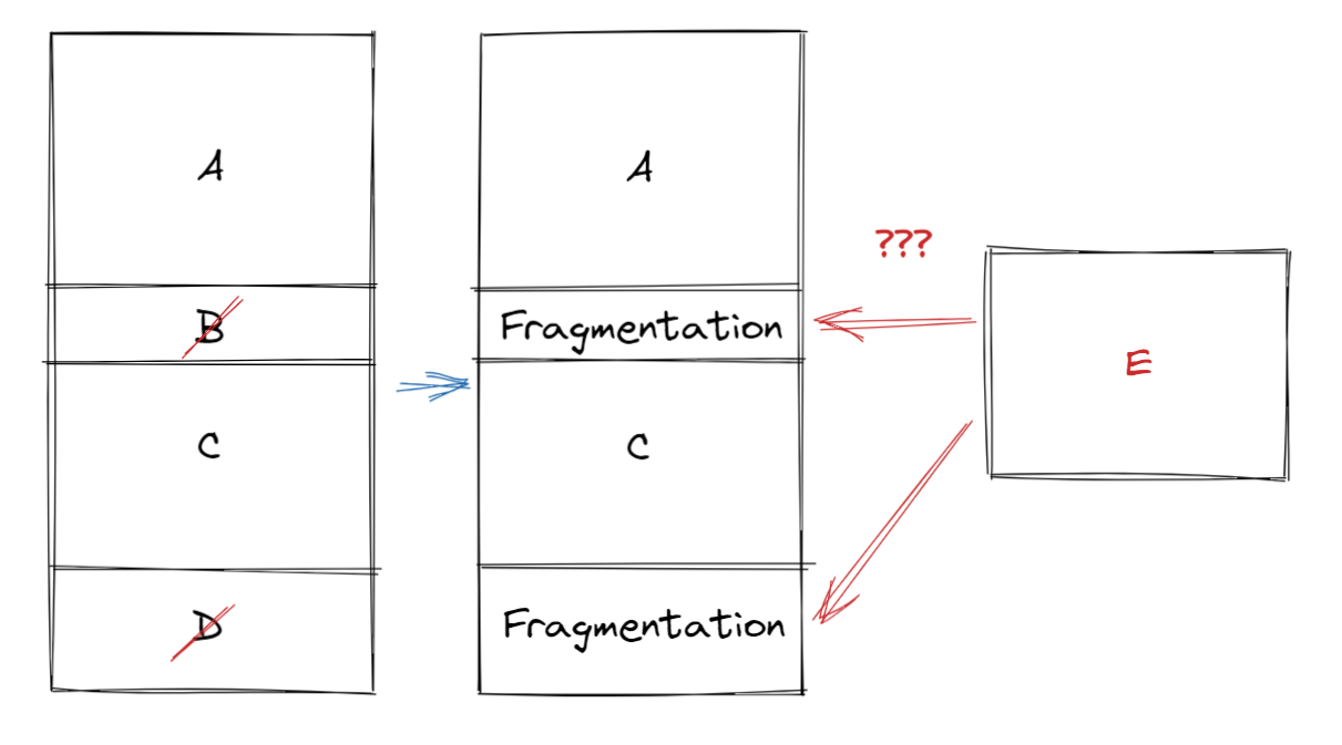 - 만약 B와 D가 종료되고 E라는 프로그램이 메모리에 올라오는 상황을 생각해보자