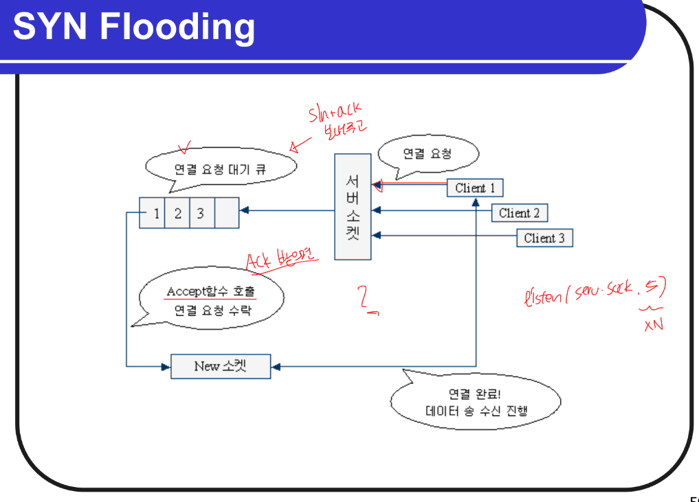 - 다만 아직 syn queue ( request queue )에 대한 설명이 이해가 안 갔다.