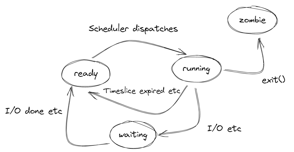 - cpu 스케줄러의 호출을 기다리는 상태