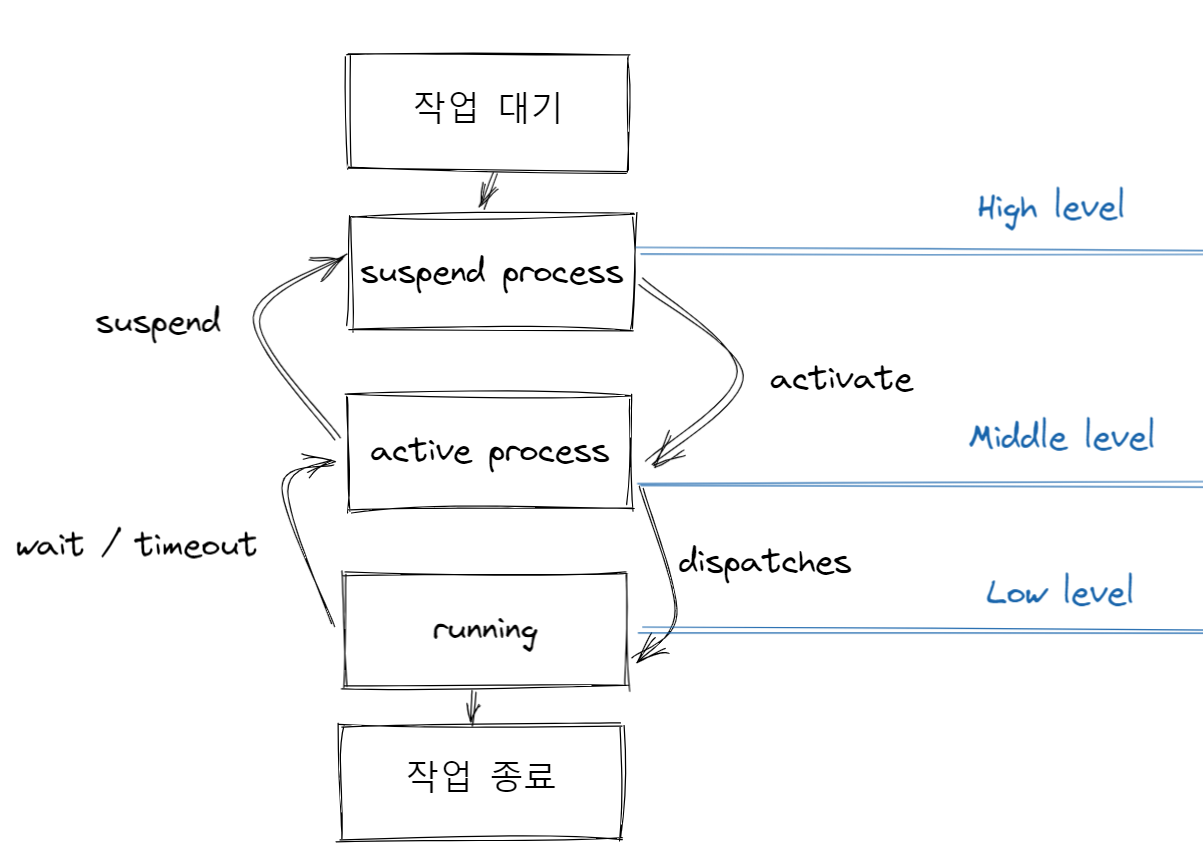 - 스케줄링은 3단계로 나뉜다.