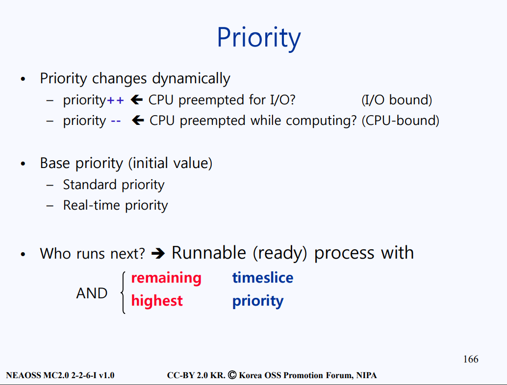 - 기본적으로 커널 프로세스가 일반 프로세스보다 우선순위가 높다.
