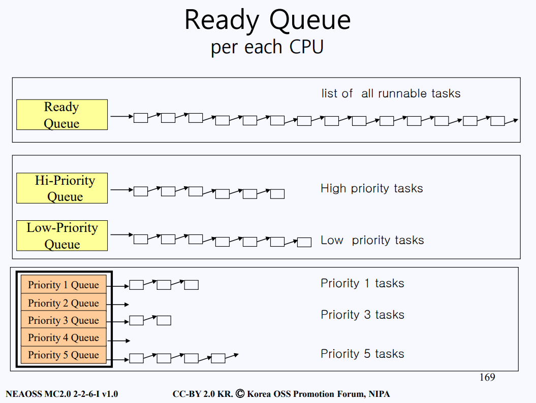 - 이때 우선순위에 따라 여러 큐를 만들어 multiple queue로 관리된다.