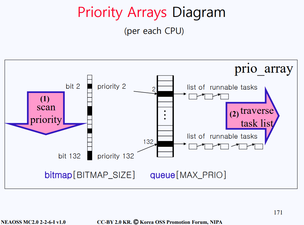 - 이때 bitmap 배열을 이용해서 해당 우선순위의 큐가 pcb(task)를 가지고 있는지 확인한다.