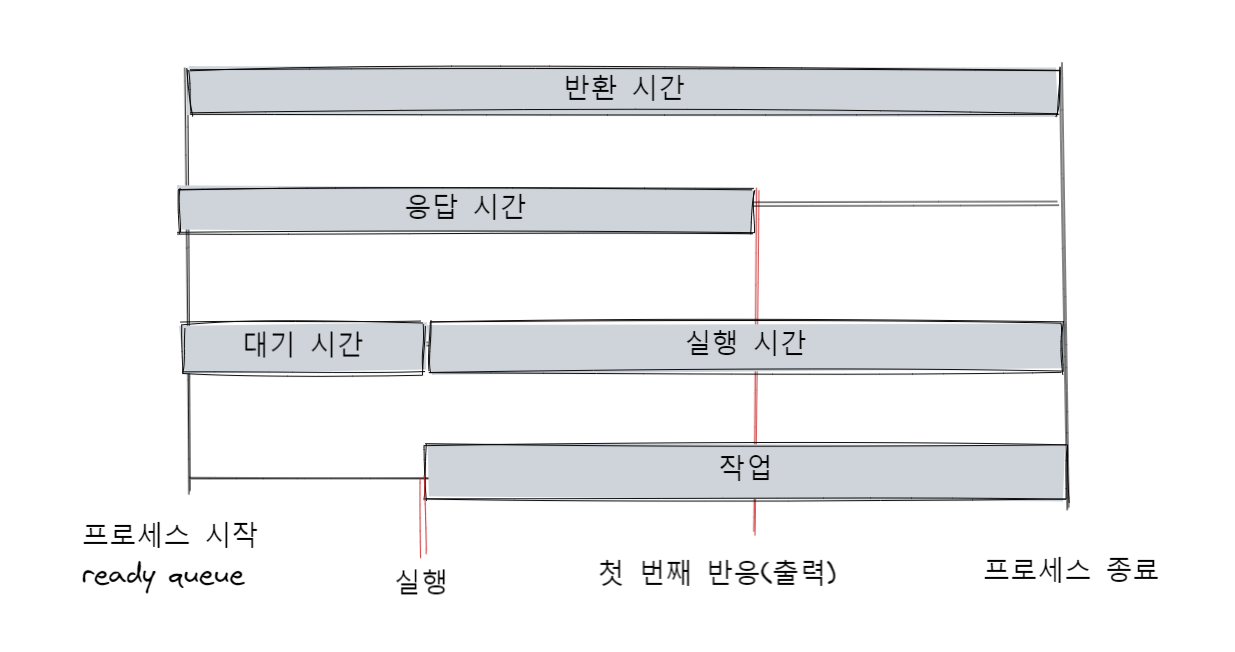 - 실행 시간 : 프로세스 작업이 시작된 후 종료되기까지 시간