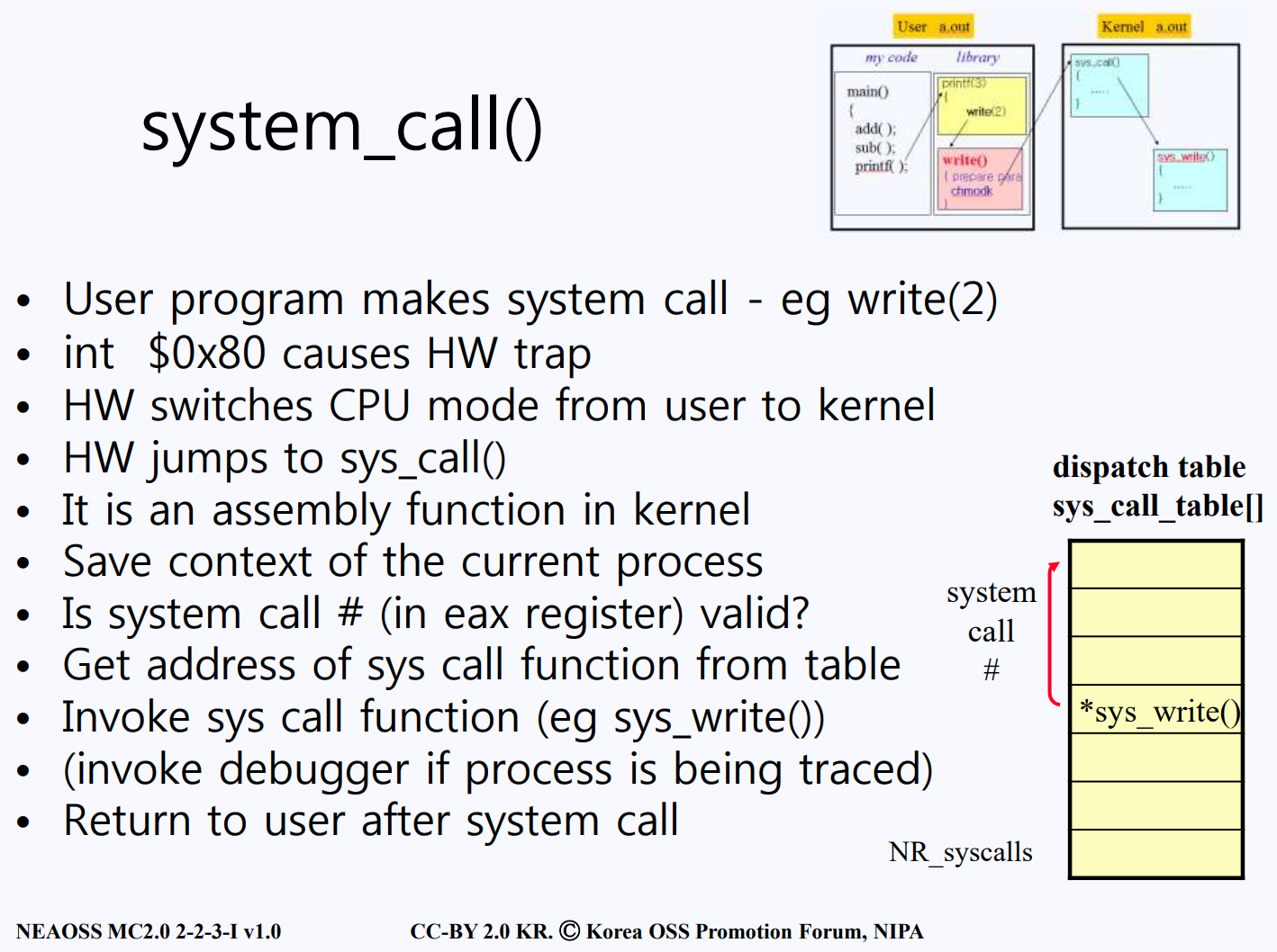 - sys_call()에서 number를 이용해 system call table에서 sys_write( )를 찾아 실행함