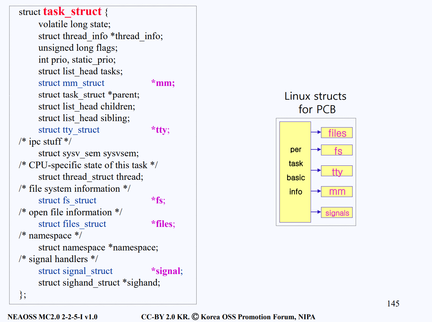 PCB는 다음과 같이 c의 struct으로 만들어져 있다.