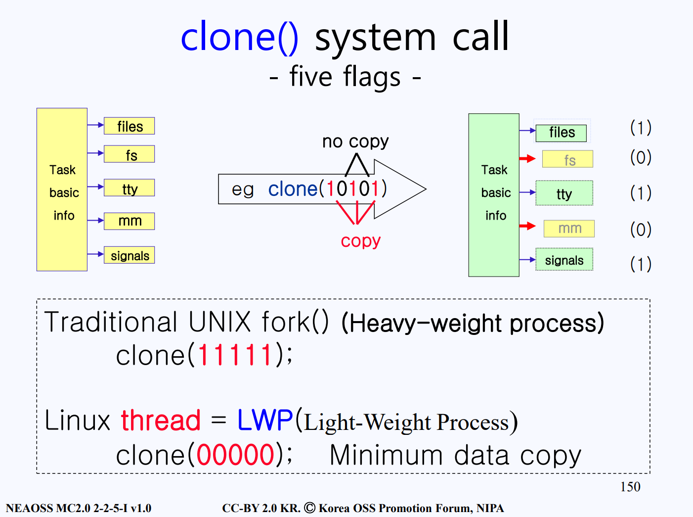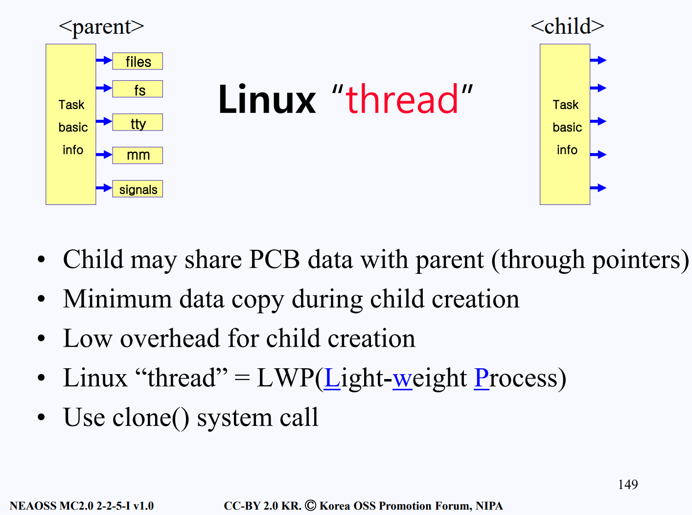 - 이때는 clone 이라는 시스템 콜이 사용된다.