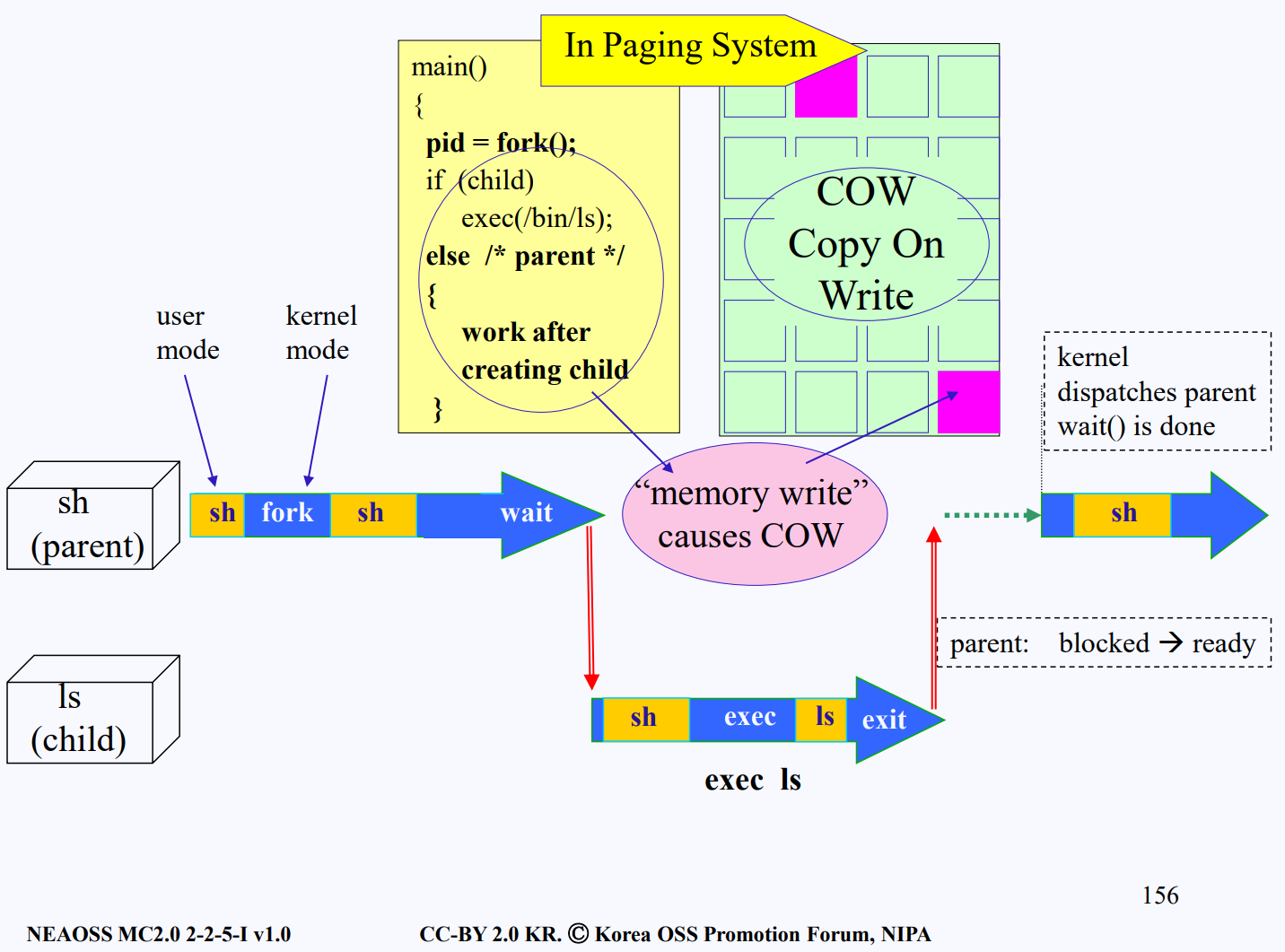 부모에서 자식으로 넘어가기전 어떤 작업 특히 write를 하게된다면 복사 이전의 메모리 정보가 달라지는 문제가 있다.